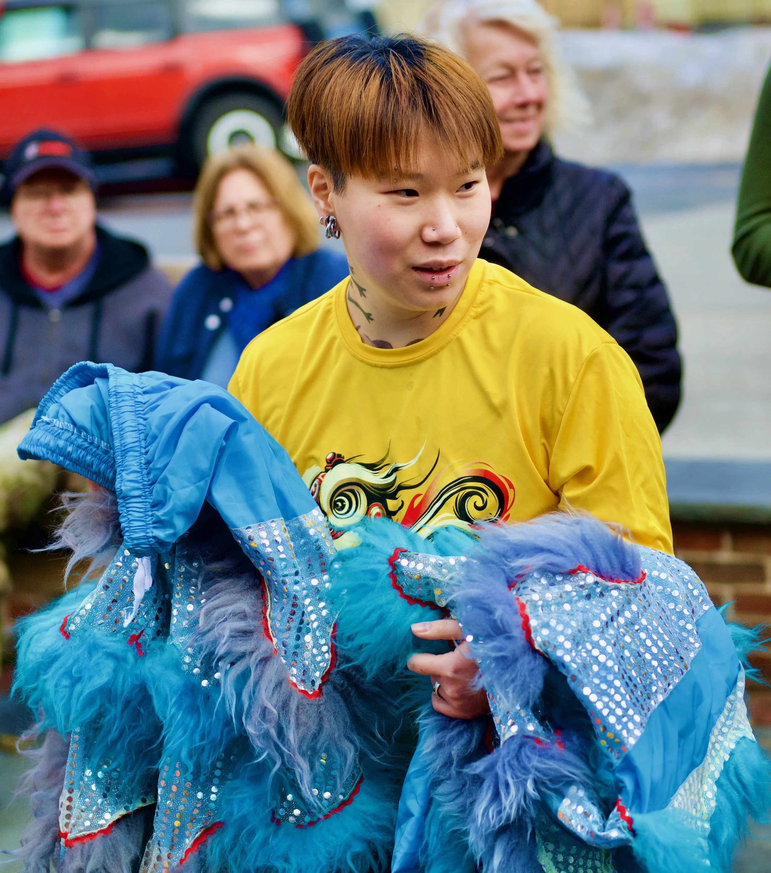 Long ago, as Chinese legend would have it, an evil spirit named Nian was terrorizing a small village every year, eating crops and villagers alike. One day, a monk discovered that this mythical monster could be scared off by loud noises, fire, and the color red. So, upon Nian’s next return to the village, everyone began hitting drums, cymbals, and gongs, setting off fireworks, and wearing red lion outfits they constructed to frighten it away. It is a tradition they continued every year afterward. “In fact,” says Joe Young, one of the leaders of South Jersey Lion Dance Troupe, “the word ‘nian’ means ‘year’. Every Lunar New Year, we say ‘Guo Nian,’ which literally means a wish for you to overcome your year.” It is intended to be a greeting of good luck, a hope that you remain free from your own monsters in the coming year. This is one of the legends behind the lion dance, a traditional Chinese performance intended to ward off evil spirits and bring good luck.Linh Huynh, the second leader of South Jersey Lion Dance Troupe, and Joe are used to telling this story, as they are frequently called on to share the history of lion dancing at school assemblies, libraries, and in classrooms. But, Linh clarifies, when they teach this legend to children, they “make it sound a lot nicer,” and leave out the part about the monster eating people. “Instead of evil spirits, we say ‘bad luck…’ So we will say, ‘We want to scare away the bad luck. We want good luck for everybody.’ It makes it more kid-friendly.”The South Jersey Lion Dance Troupe was originally formed by Joe’s father, Michael Young, in 1996. “He was always interested in lion dancing.” Growing up, Joe and his father attended the Chinese School of South Jersey along with Joe’s two younger brothers. The school had a martial arts instructor who would teach the students kung fu. Lion dancing is an art based in kung fu, using kung fu stances and movements. “The stances are part of the expressive nature of the lion.” When Joe was in high school, his father found a lion dance instructor, Peter Louie, who was willing to come to the school to teach students once a week. Eventually, the group became its own entity so they could perform outside of the school as well.Over time, everyone in the troupe got older and moved on, and “the attrition rate was too high to continue. So, the class became dormant.”That is, until about 3 years ago, when the school reached out to Joe to see if he would be interested in reviving it. “I did. I was by myself. There were only a handful of students, and I had an hour to spare on Sunday afternoons. So I agreed to it.” The class began to grow and grow “to the point where I couldn’t handle it myself. I told the administration that I needed help, or I wouldn’t be able to continue. One of the administrators found out that Linh had a lion dancing group at the Vietnamese church. So she reached out to her, and that's how we connected.”Linh’s love of lion dancing started when she was a child. “It started out as a hobby when I was in elementary school going into middle school. I loved how it had such a strong basis in martial arts. I didn’t take kung fu when I was young, but I always wanted to. Whenever I could, I would learn on my own. I would try to learn as much as I could.” Linh also liked the musical element of lion dancing. “It takes aspects of martial arts and applies them to a rhythm. I thought, ‘I know music. I play music, and I like martial arts. I am not good at dancing, but lion dancing makes sense to me.’” Finally, it was a style of performance that Linh felt comfortable with. “I had really bad stage fright. But when you’re in the lion head, no one knows who you are because you’re hidden.”At first, Linh learned all she knew about lion dancing from YouTube. “We learned by watching videos. We loved it.” Then, about 8 years ago, she connected with Sifu Cheung, a renowned Hung Gar instructor in Philadelphia. (Hung Gar is a Southern Chinese kung fu style.) She eventually received formal training from a variety of Hung Gar schools. Traditionally, lion dancers would belong to a specific kung fu school, but that is no longer necessarily the case. “Now in the states, it is not uncommon to have lion dance troupes that are not affiliated with kung fu schools.”“Growing up, we only performed lion dances once a year during the Lunar New Year. 4 or 5 weeks prior, we would practice. I was the first female lion dancer in my troupe. It was entirely Vietnamese, and they were like, ‘Oh my gosh, a female Vietnamese lion dancer? No way.’ The cultural aspect of it has really changed since. There are many more females in lion dancing now. I don’t know if it was ever restricted to men only, but it always attracted more men than women.”Part of the challenge of lion dancing is that the heads are very heavy. Linh explains that the lion heads are traditionally made from bamboo framing and paper mache. They then have a veneer varnish on top and are covered in fur. “The workmanship is really cool; if you look inside you can see all of the little details. There’s a mechanism to open and close the eyes, and there’s a technique to hold it. It’s a lot of wrist control.”There are different forms of lion dancing and lion dance heads, but they can generally be split into two categories: Northern and Southern. “The Northern heads look very different - they’re almost monster looking. You can tell right away.” Traditionally, lion heads would be red, but these days, they come in all different colors. The South Jersey Lion Dance Troupe also has some styrofoam lion heads and plastic ones for the kids to use. When they go to assemblies, they let the children play with the heads, so it’s good to have some durable ones. “Plastic is good. They can drop the lion, and we won’t freak out. They take quite a beating.”Joe explains that music is a